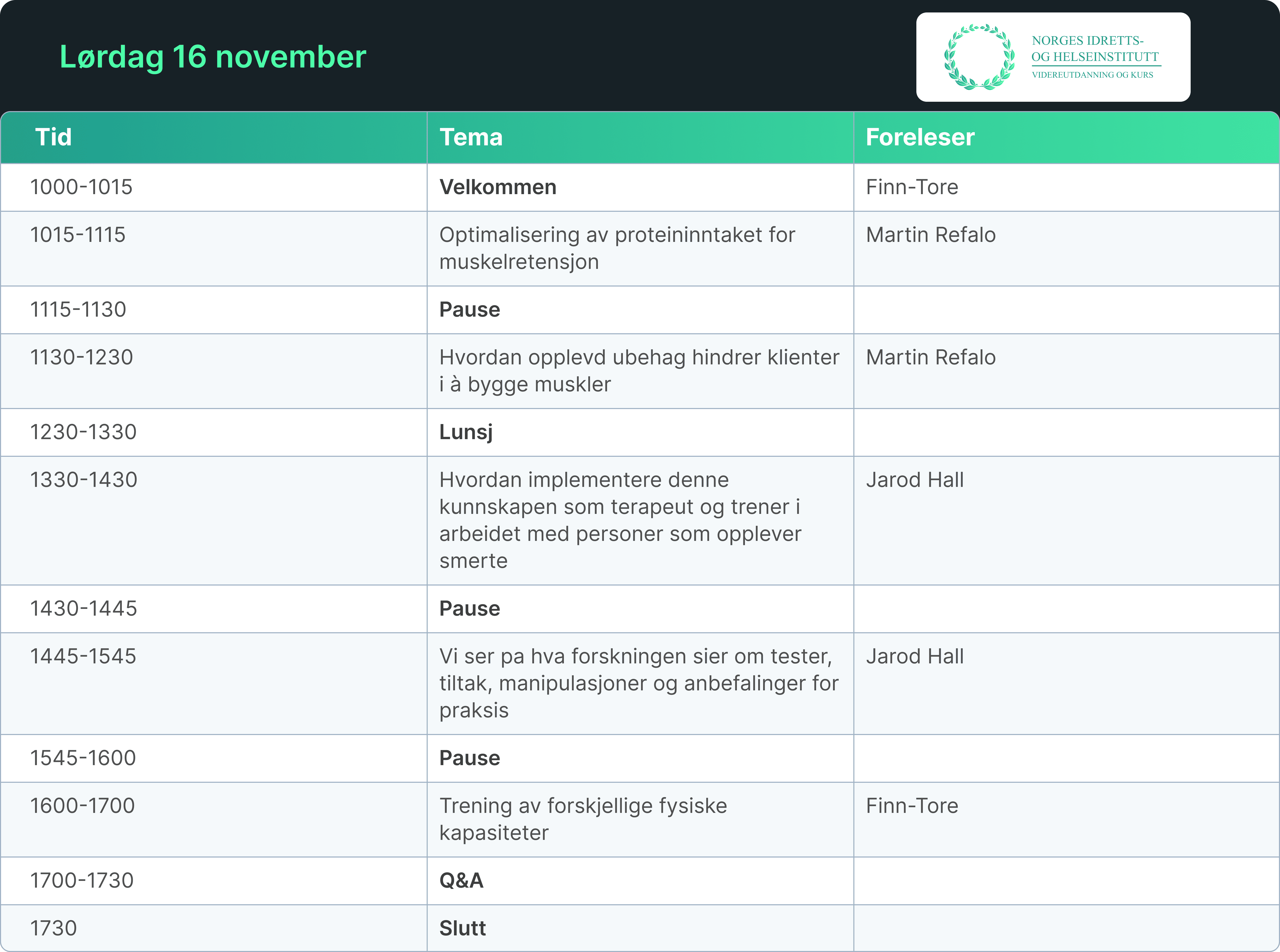 Dette er en unik sjanse til å styrke din faglige kompetanse og bygge bro mellom ulike helse- og treningsdisipliner. Enten du jobber som personlig trener, fysioterapeut, osteopat, naprapat eller innen helse generelt, vil du finne inspirasjon og verdifull kunnskap. Bli med på en helg full av faglig påfyll og nettverksbygging!